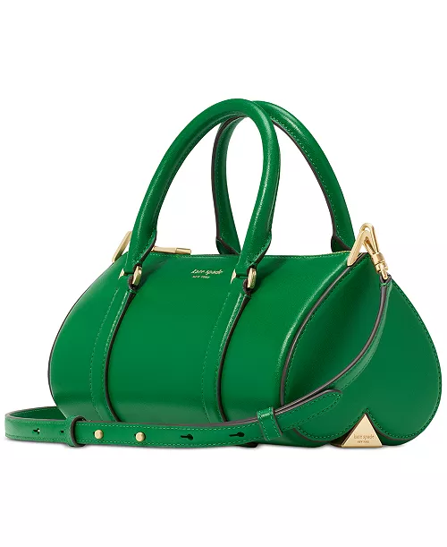 The kate spade new york Spade Icon Small Leather Barrel Bag reimagines the timeless barrel silhouette with a unique spade-inspired design. Crafted from premium leather, this compact yet stylish accessory offers both functionality and charm. Available in a variety of colors, including elegant green leather handbags, it seamlessly blends sophistication with a touch of whimsy.