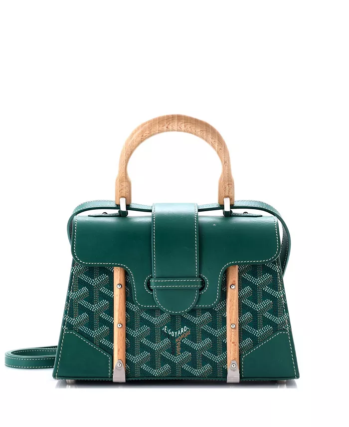 The Goyard Mini Structured Saigon Top Handle Bag is a refined expression of heritage and luxury. Crafted in France, this exquisite piece combines coated canvas with premium leather accents, showcasing the brand’s signature craftsmanship. Its compact yet structured design exudes elegance, making it a distinguished accessory for any occasion. Available in a variety of colors, including sophisticated green leather handbags, it offers a touch of exclusivity and timeless appeal.