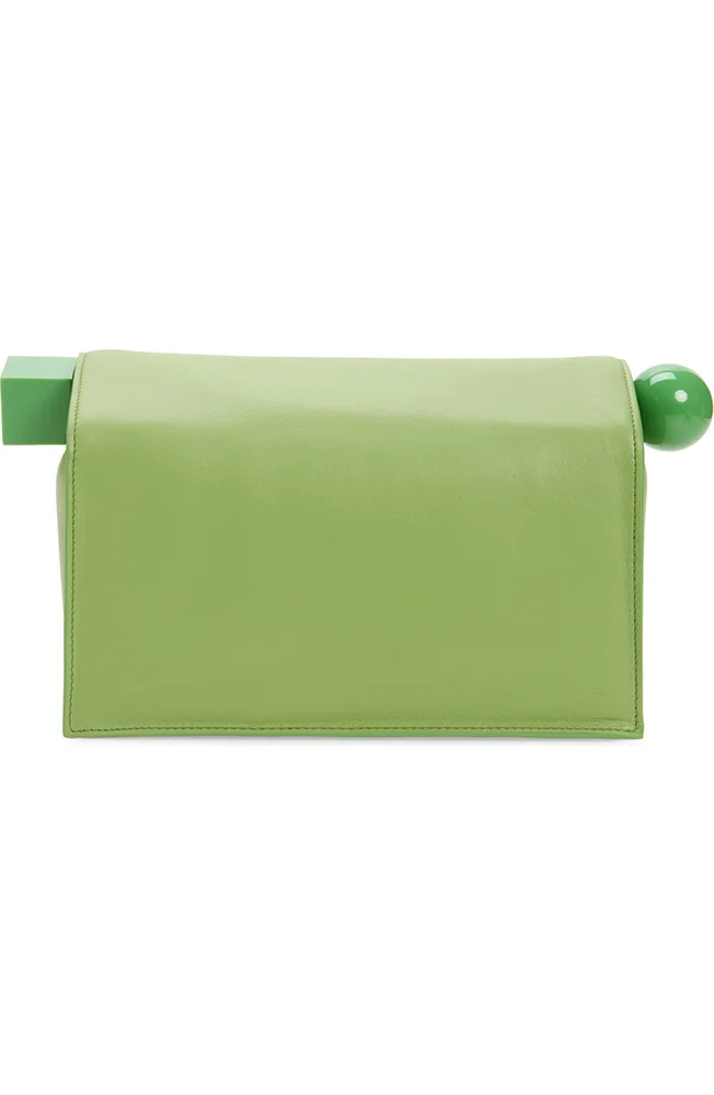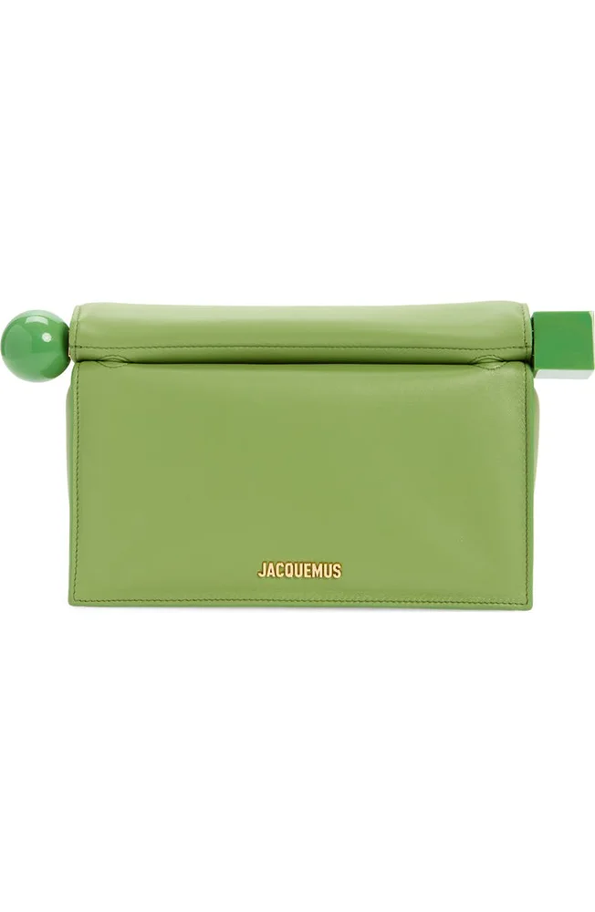 The Jacquemus La Pochette Rond Carré Leather Clutch is a striking fusion of structure and creativity. Designed with a distinctive boxy, roll-top silhouette, this clutch takes inspiration from food takeout bags while maintaining a refined, high-fashion appeal. Crafted from supple calfskin leather, it exudes sophistication and modernity. Available in various shades, including unique green leather handbags, this clutch offers a refreshing take on minimalist luxury.