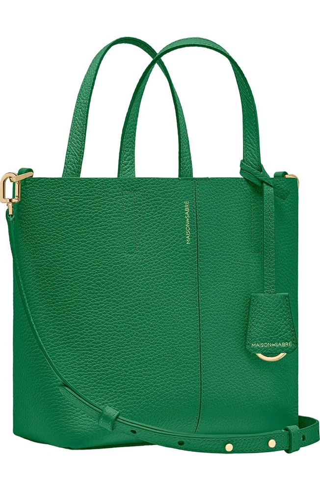The MAISON de SABRÉ Small Leather Soft Tote is a refined and versatile companion designed for modern lifestyles. Crafted from full-grain sustainable DriTan™ leather, this compact tote offers a blend of luxury, practicality, and eco-conscious craftsmanship. With a semi-structured, self-standing design, it maintains its elegant shape while providing ample space for daily essentials. Available in various shades, including sophisticated green leather handbags, it adds a touch of understated style to any wardrobe.