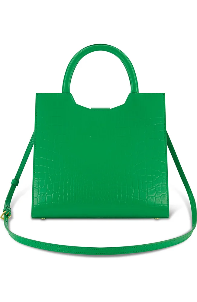 The Mac Duggal Crocodile Leather Buckle Detail Medium Tote Bag is designed for those who appreciate understated elegance. Crafted from premium crocodile-embossed leather, this tote exudes sophistication while maintaining a minimalist aesthetic. The discreet gold-tone details enhance its refined look, making it a versatile choice for both professional and casual settings. Available in various shades, including timeless green leather handbags, this tote effortlessly complements any wardrobe.