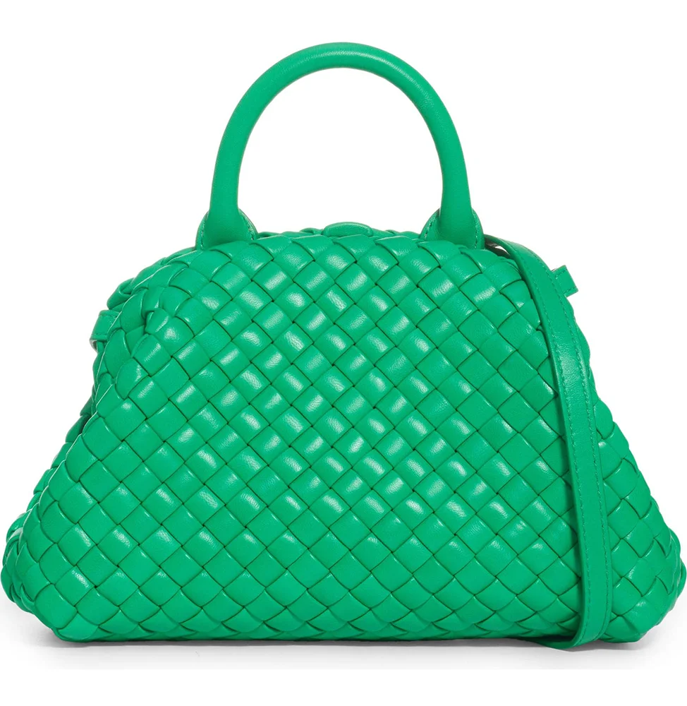 The Bottega Veneta Mini Intrecciato Leather Top Handle Bag is a testament to expert craftsmanship and timeless sophistication. Meticulously handwoven from double-face nappa leather, this bag highlights the brand’s signature intrecciato technique while maintaining a sleek, unlined design that showcases the artistry behind every detail. Available in a range of refined colors, including elegant green leather handbags, it offers a luxurious yet versatile touch to any wardrobe.