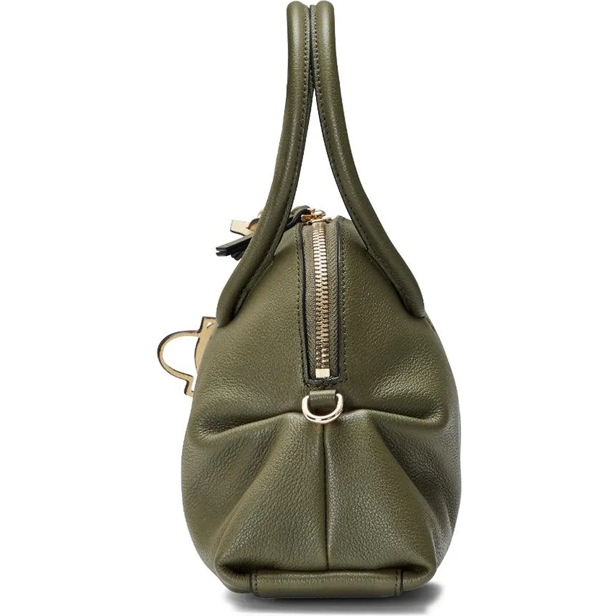 Logo-engraved ring allows for a unique way to carry the bag