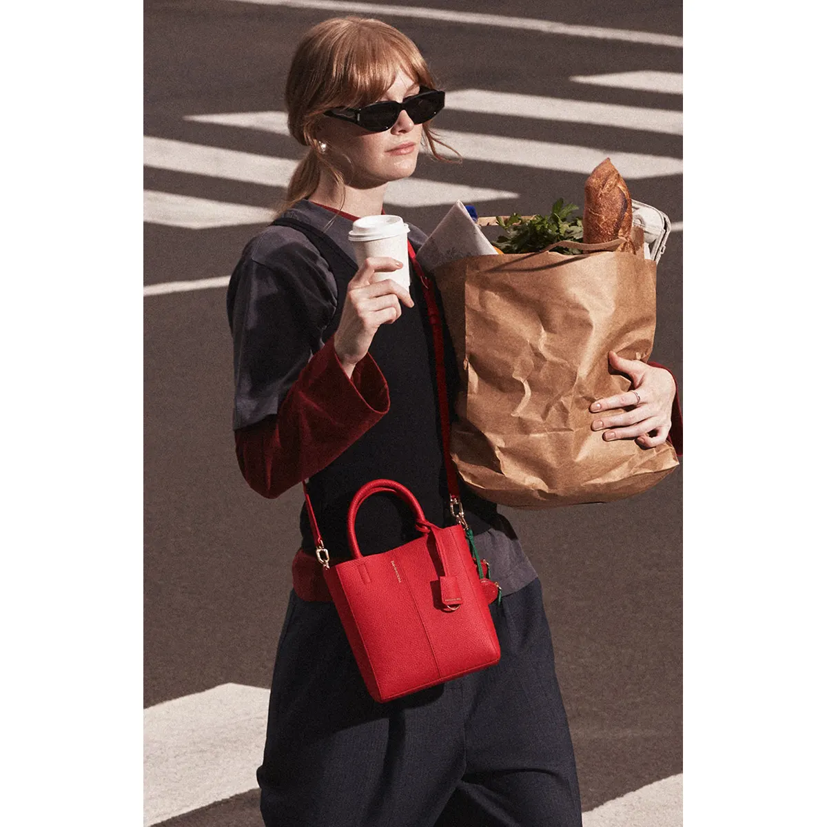 Removable, adjustable crossbody strap allows for versatile styling options, whether you prefer a hands-free look or classic carry.