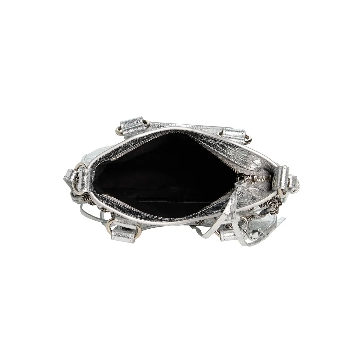 Made from crinkled metallic leather for a unique, textured finish