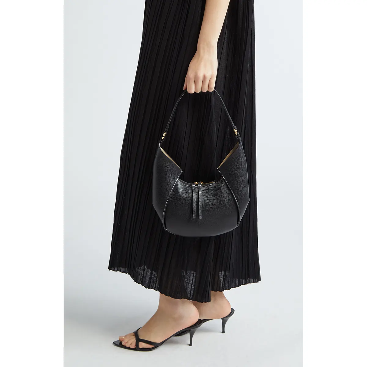 Graphic lines and chain hardware add a modern, elevated touch to the minimalist design.