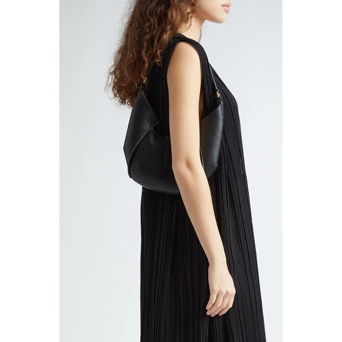 A mini leather tote bag that blends sculptural design with functional elegance, perfect for everyday use or as a chic accessory for a night out.