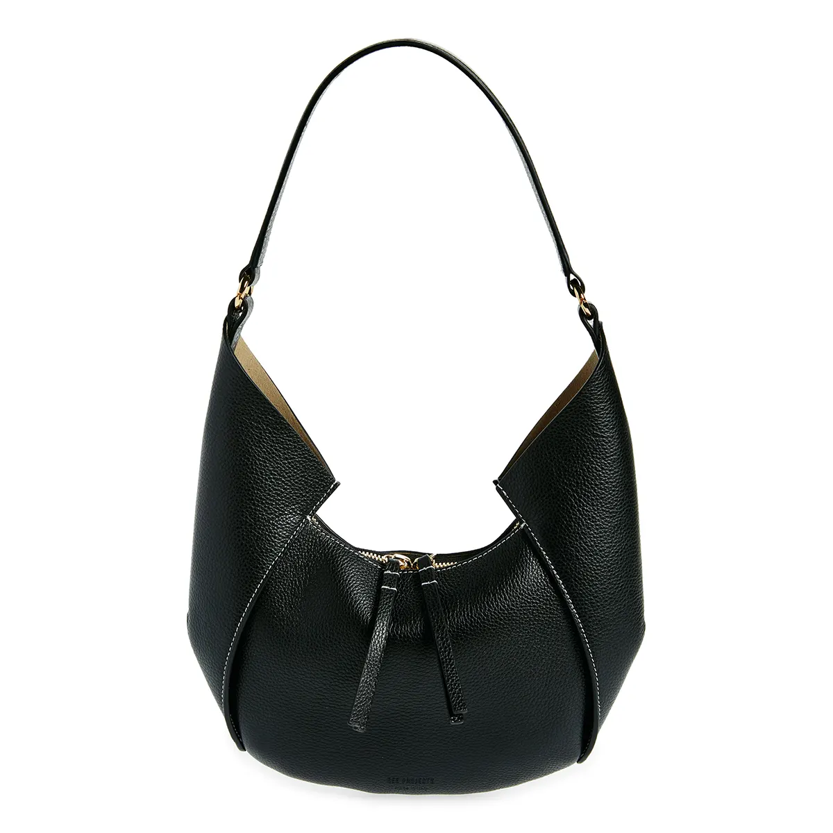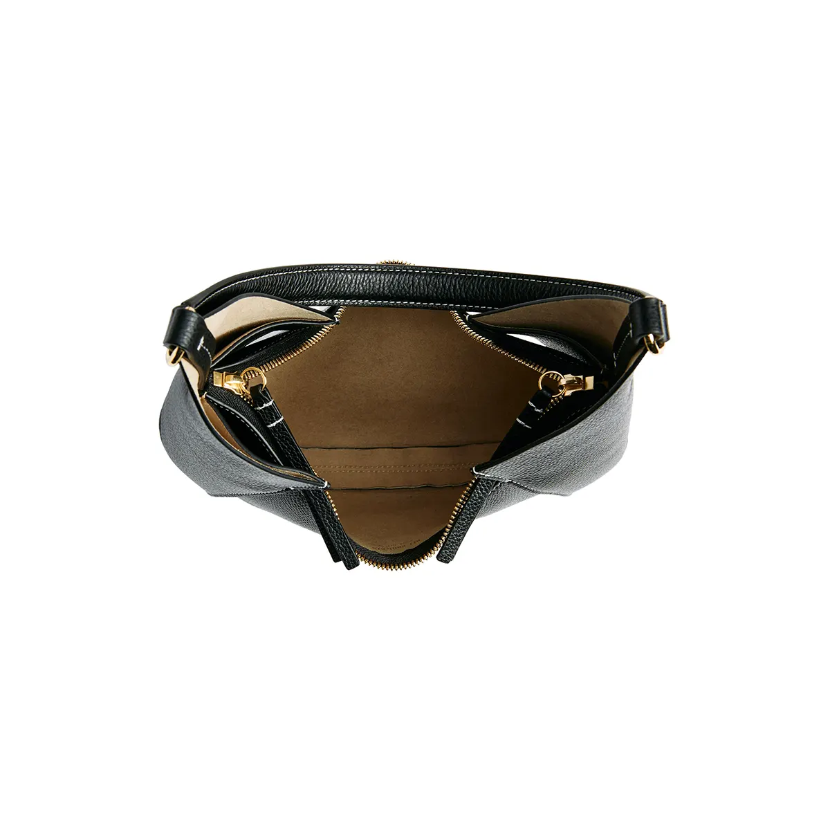The tethered zip pouch inside the bag makes organization easy, while the unlined interior maintains a sleek, minimalist appearance.