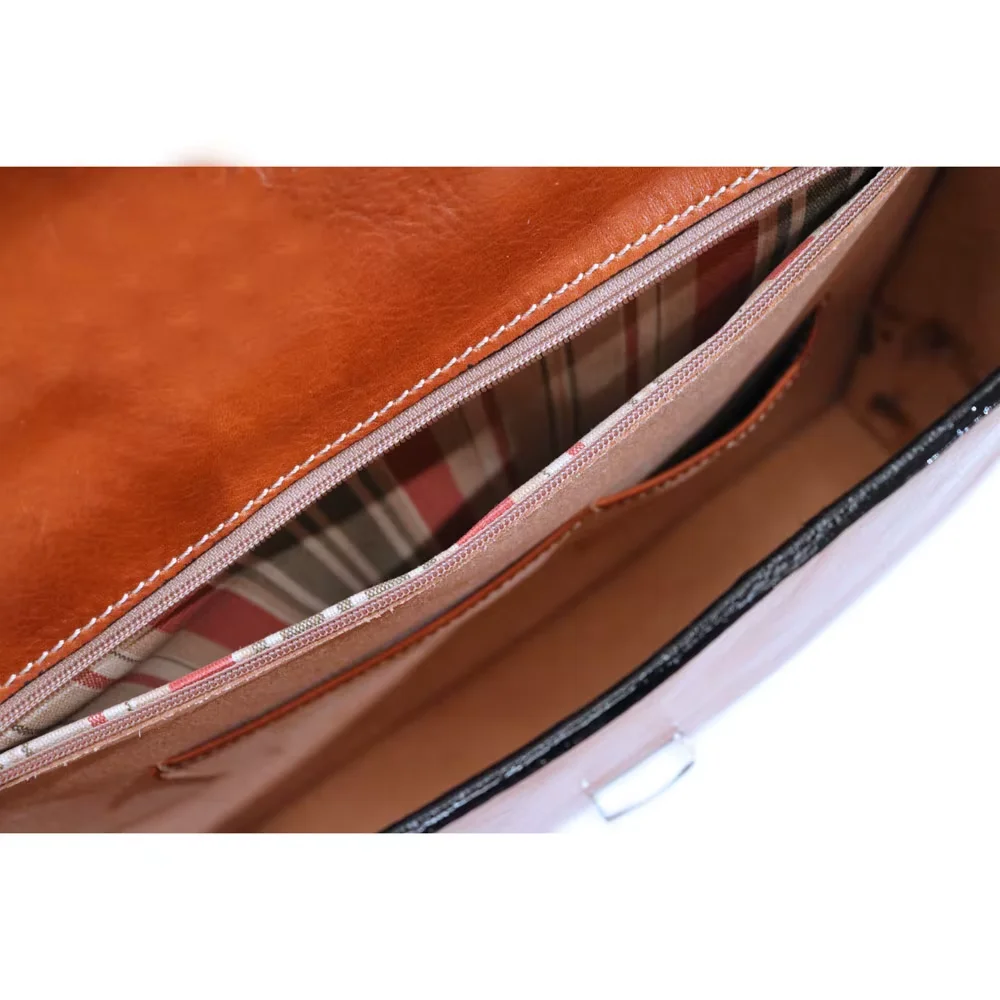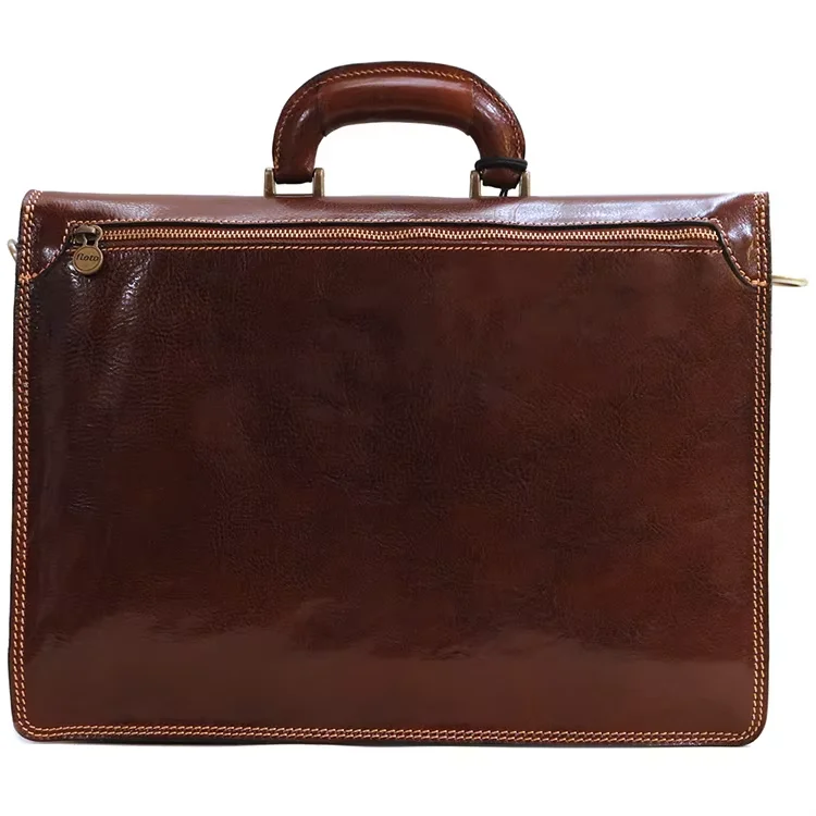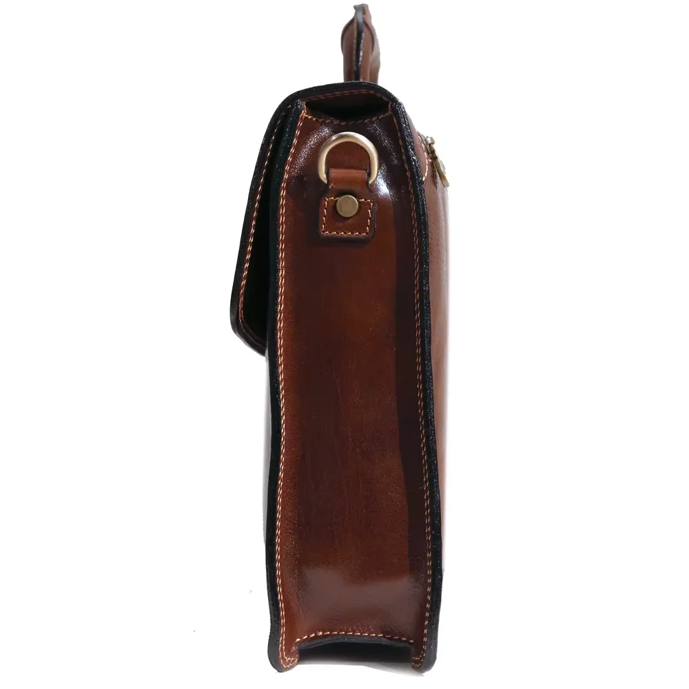 Custom Men’s Short Tote Bag Calfskin Leather Messenger Briefcase Bag With Phone Pencil Card Holder