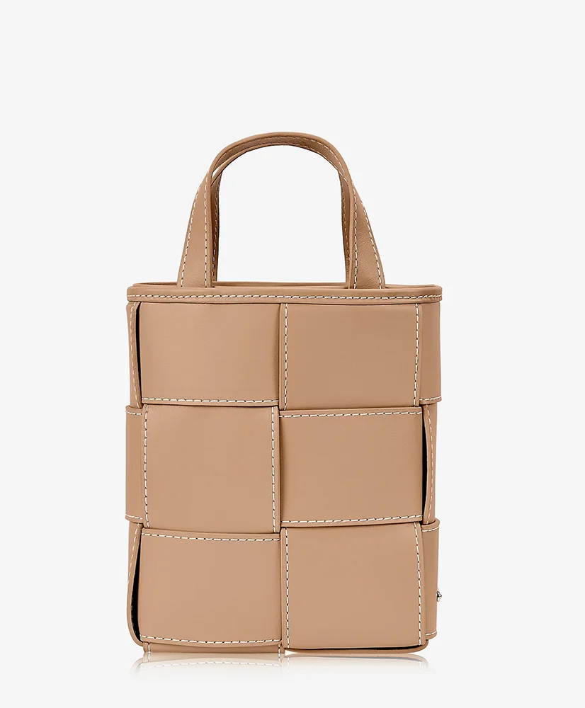 The Chloe Mini Shopper by GiGi New York is a stylish and compact accessory designed for effortless everyday wear. Crafted from hand-woven Italian calfskin leather, it features a structured yet lightweight silhouette that adds texture and sophistication to any look. The minimalist design is complemented by a secure magnetic closure, keeping essentials within easy reach. Designed for versatility, it can be carried by its top handles or worn hands-free with the detachable crossbody strap, offering the practicality and flexibility often appreciated in a woven leather crossbody bag.
