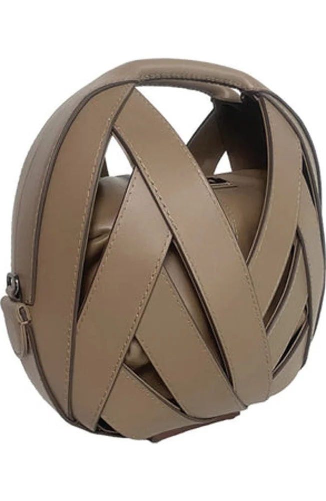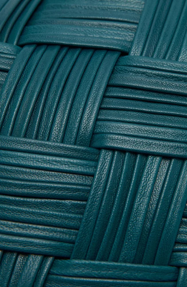 - A modern take on woven leather craftsmanship with a distinctive and flexible structure