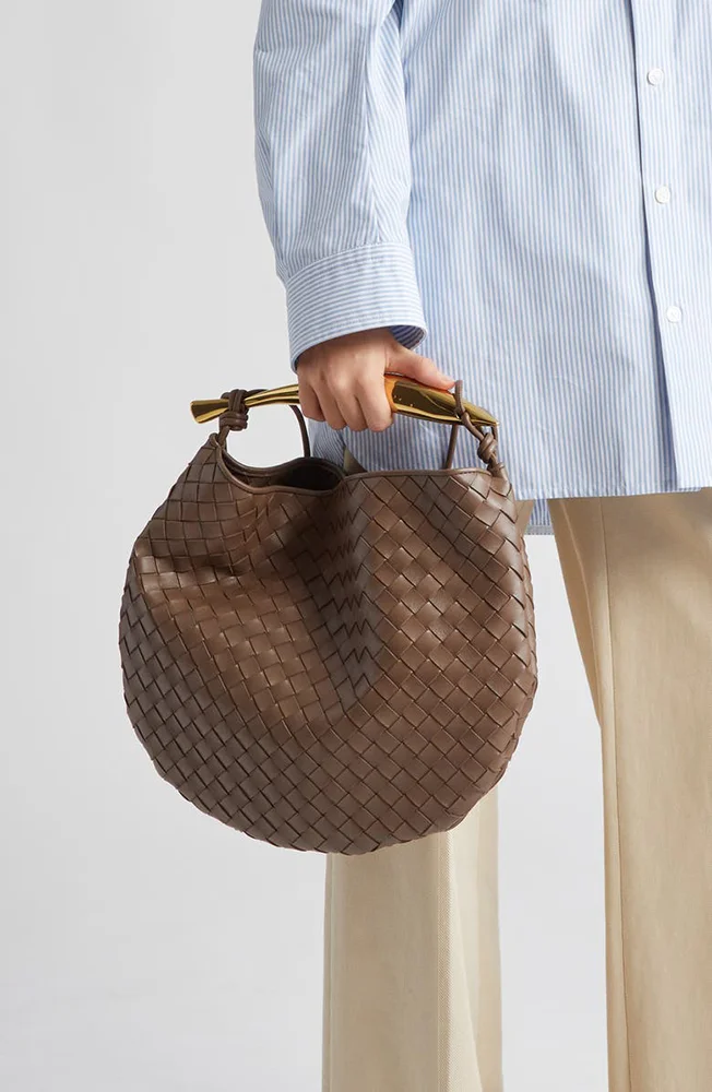With its sculptural aesthetic and fluid movement, this piece embodies the intricate artistry often seen in woven leather crossbody bags, blending statement-making design with practical everyday functionality.