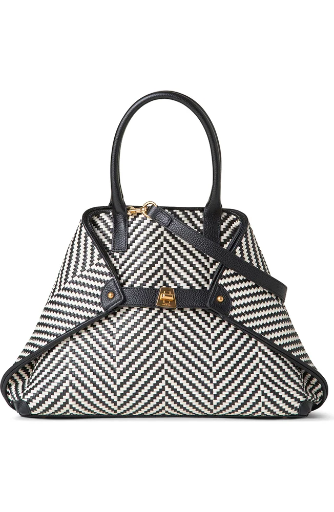 - A distinctive handbag that blends architectural elegance with practical functionality