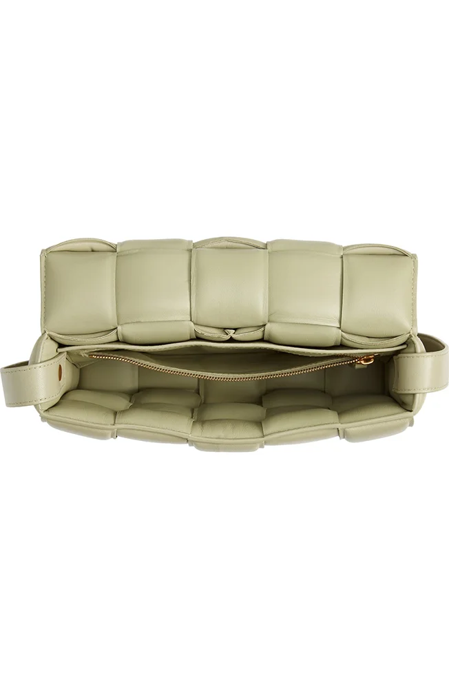 The thoughtful construction and sculptural appeal of this bag highlight the artistry and innovation that define woven leather crossbody bags. Its padded weaving and sleek silhouette make it a standout accessory while maintaining a refined and versatile aesthetic.
