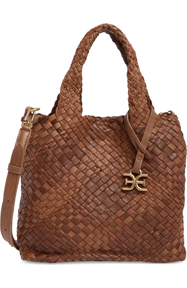 The Small Priya Woven Leather Tote by Sam Edelman is a refined interpretation of classic weaving, combining a relaxed silhouette with thoughtful functionality. Crafted from finely woven leather, this tote features polished logo hardware that enhances its sophisticated appeal. Despite its compact size, it is designed for effortless daily use, offering multiple compartments to keep essentials neatly organized. The magnetic-snap closure ensures easy access, while the combination of top carry handles and a removable, adjustable crossbody strap allows for versatile carrying options. With its stylish woven texture and practical layout, this bag embodies the craftsmanship and convenience often associated with a woven leather crossbody bag, making it an ideal choice for both casual and elevated looks.